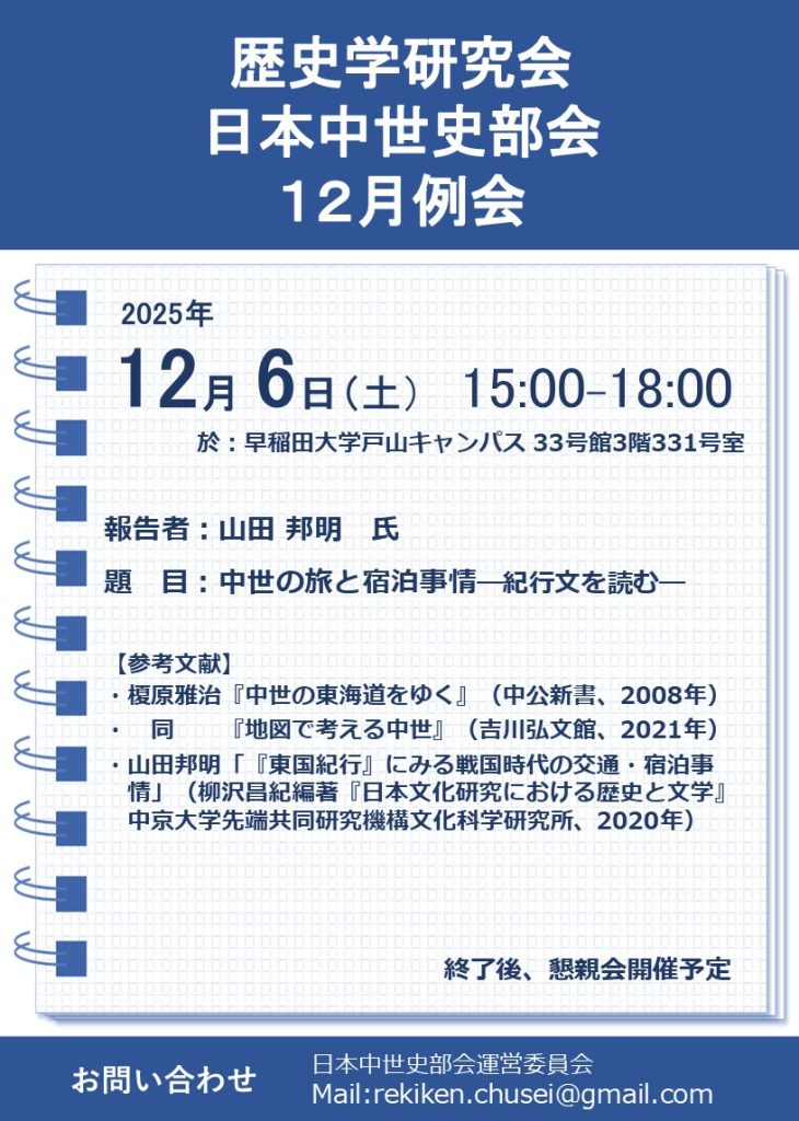 ご希望の方は5月20日(火)以前に必ず日本中世史部会宛にメールでご一報ください。