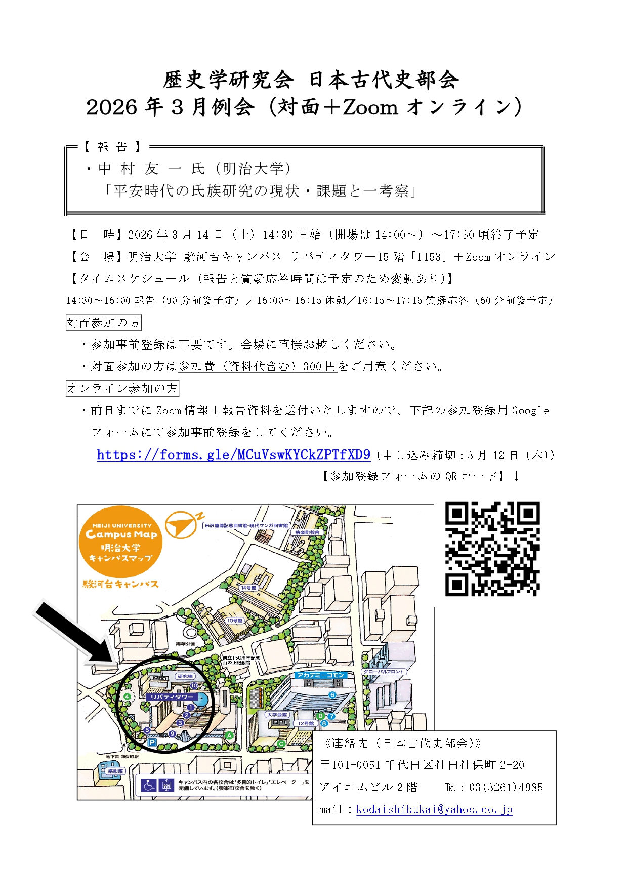 ※事前参加登録したにもかかわらず、前日までにURLや報告資料が届かなった場合、下記の歴研日本古代史部会のアドレスにご連絡願います。