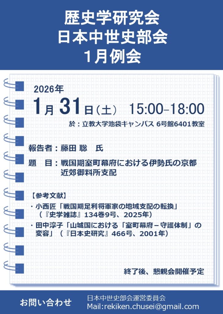日本中世史部会1月例会のご案内